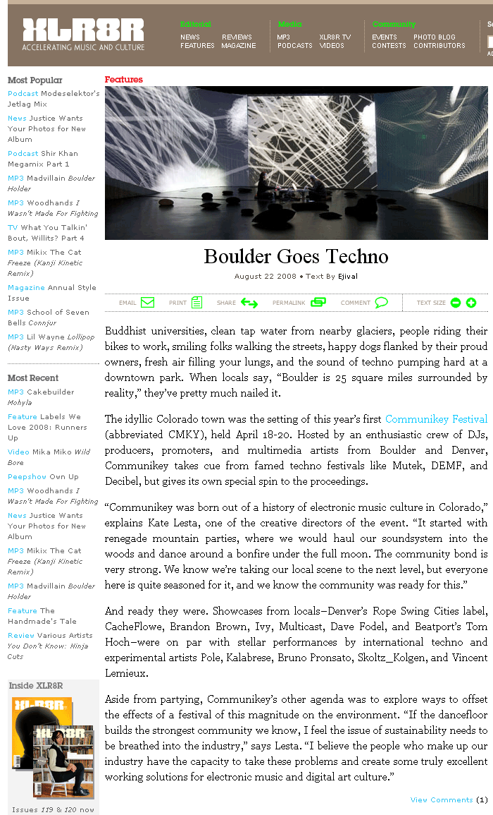XLR8R wrote up the awesome Communikey fest in Boulder